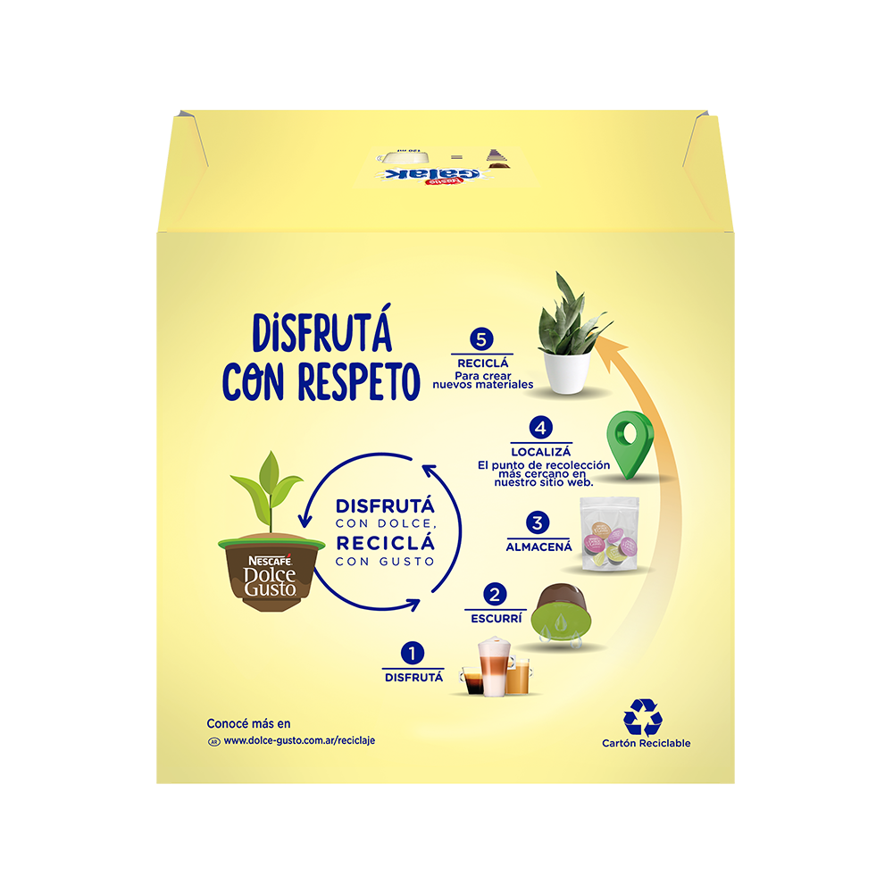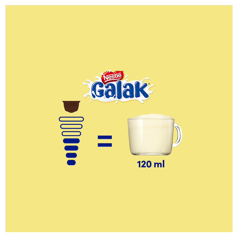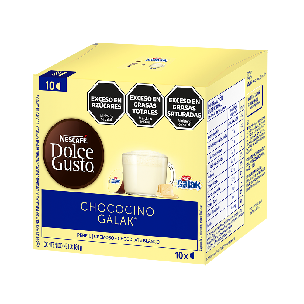 ¡Nuevas cápsulas Dolce Gusto® Galak! Con GALAK® experimentarás la textura aterciopelada y el sabor inigualable del chocolate blanco. Disfrutá de una chocolatada blanca. ¡Edición Limitada! Probala ya!